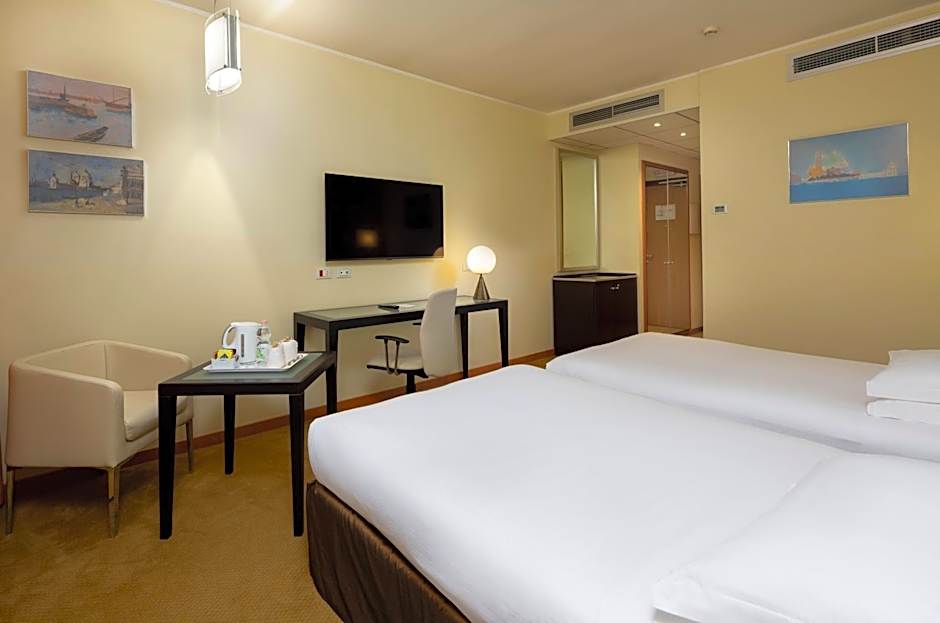 The spacious double room offers air conditioning, soundproof walls, as well as a private bathroom boasting a walk-in shower and a bath or a shower. The double room features a mini-bar, a tea and coffee maker, a wardrobe, a safe deposit box, as well as a flat-screen TV with satellite channels. The unit has 2 beds.